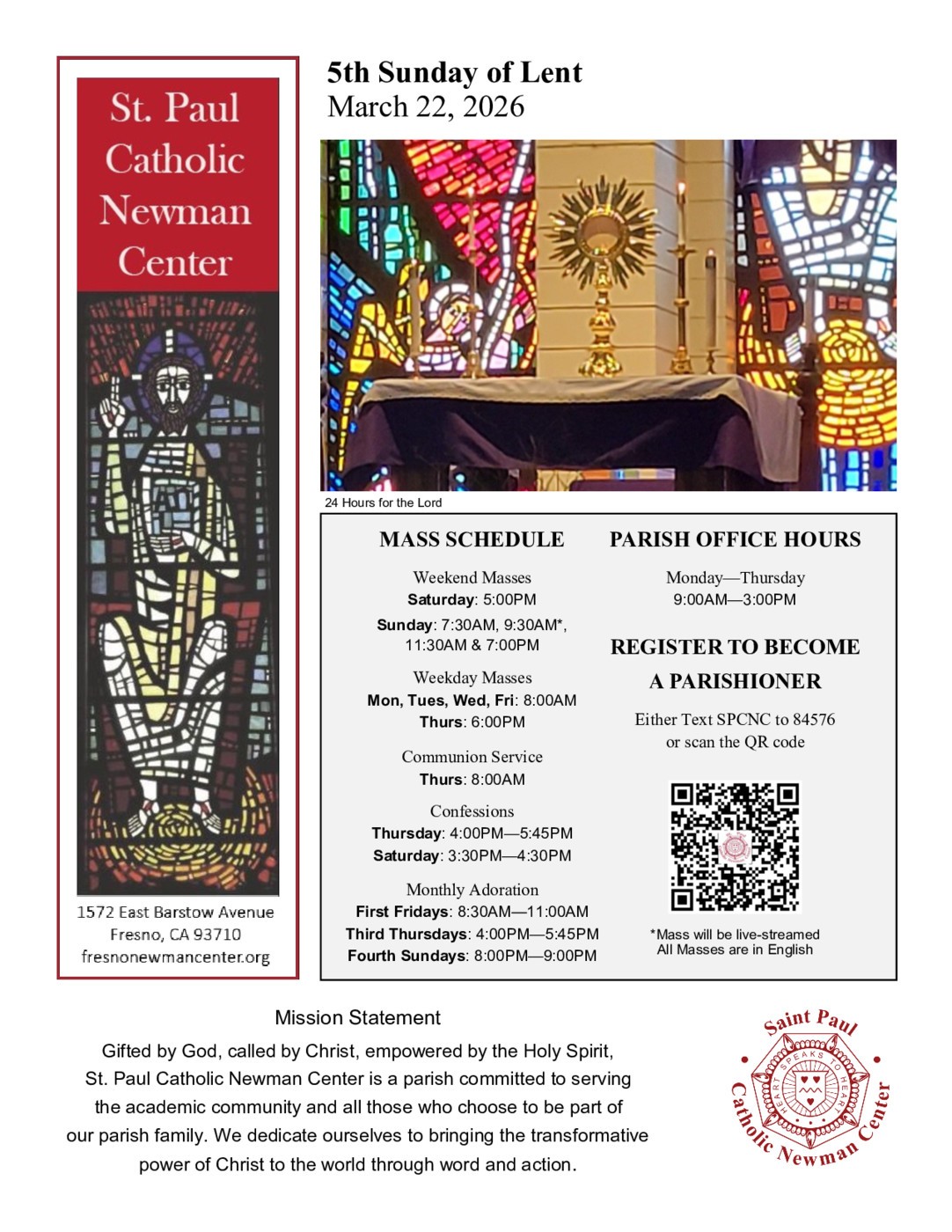 If you would like the bulletin emailed to you every week please sign-up through Flocknote.