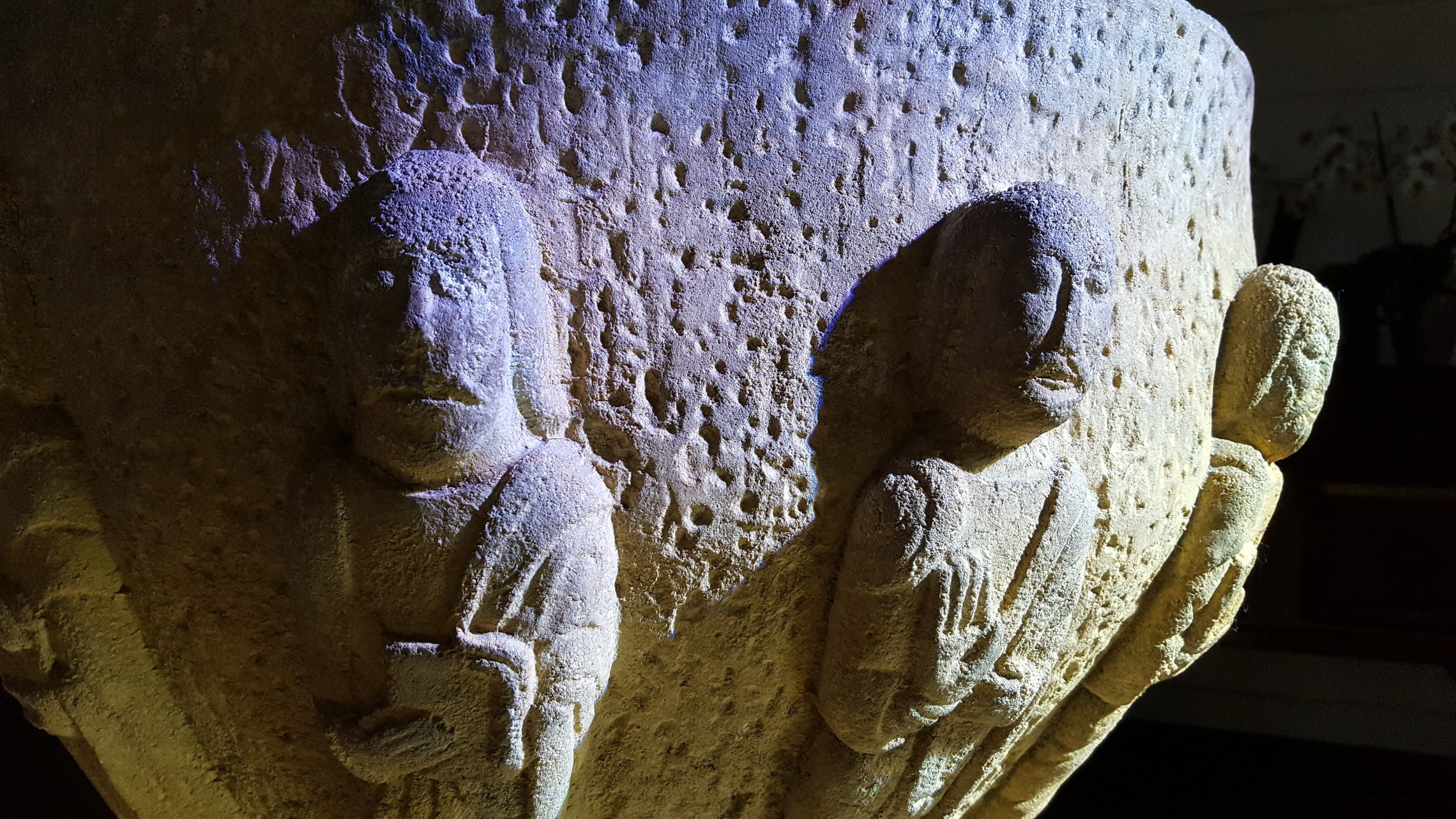 Matthew is symbolized by the human face or angel, representing Matthew’s depiction of Jesus as the one in whom the divine and human meet. Matthew’s gospel includes Jesus’ genealogy, which shows His ties to humanity (Son of Man), as well as illustrating how this human Jesus fulfilled His destiny as Son of God, according to the Jewish scripture.