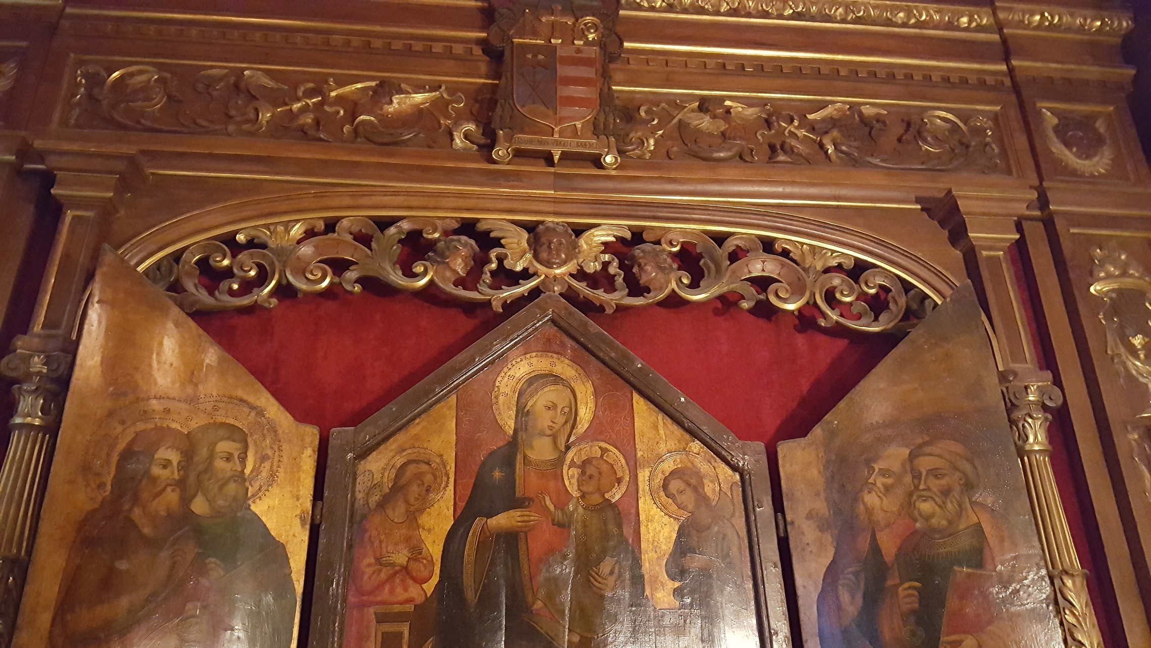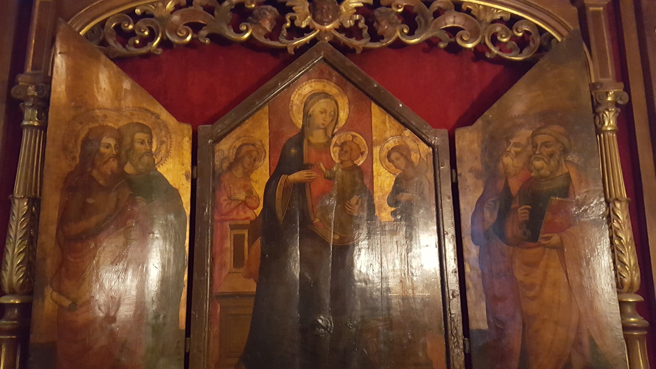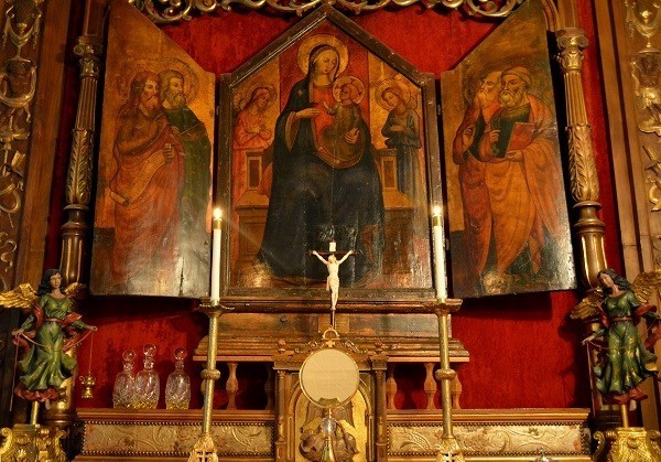 The original altar had an altar piece of the Annunciation. Father Negro traded the painting for the present triptych, obtained from the collection of the Right Reverend Monsignor Francis X. Singleton, P.A., who had obtained it from the collection of Mr. Ernest De Burger. It is a fine art work in the style of the Renaissance. It dates at least from the beginning of the nineteenth century, but nothing more is known.